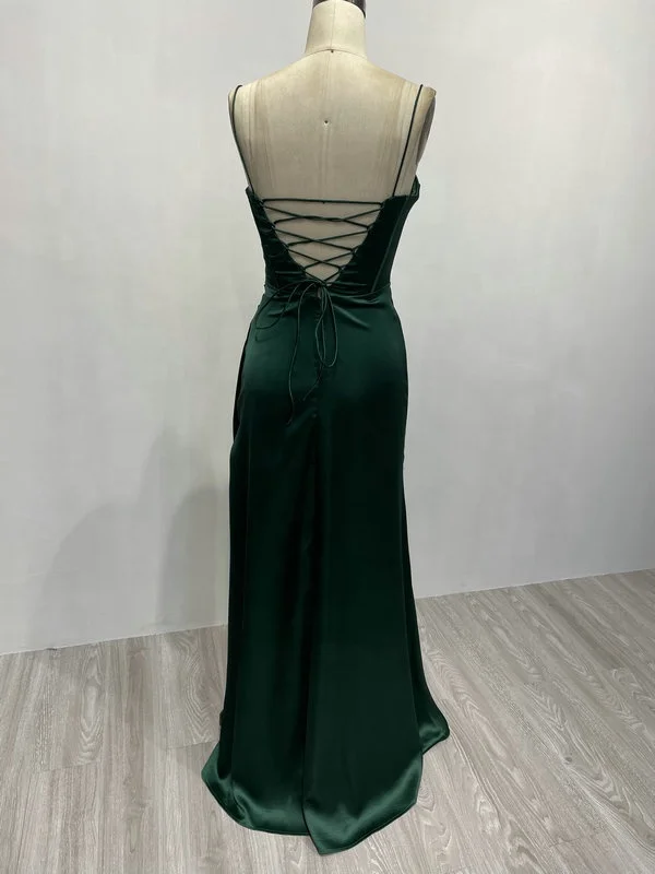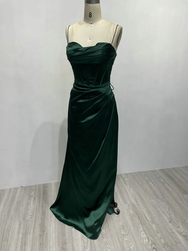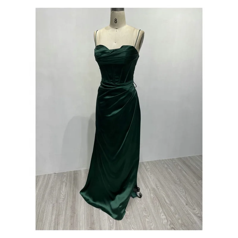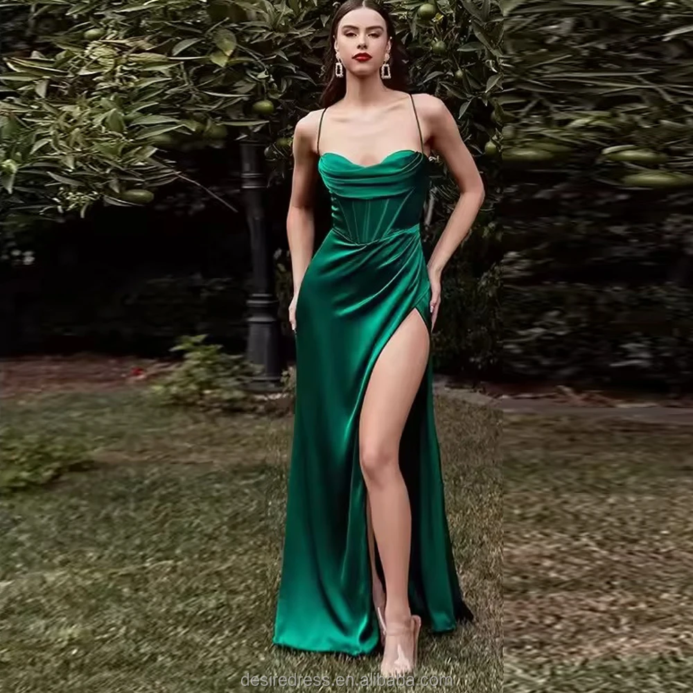 MC20018 Elegant Green Satin Evening Gown Sexy Backless Slit Party Long Bridesmaid Dresses Solid High Waist Graduation Dresses